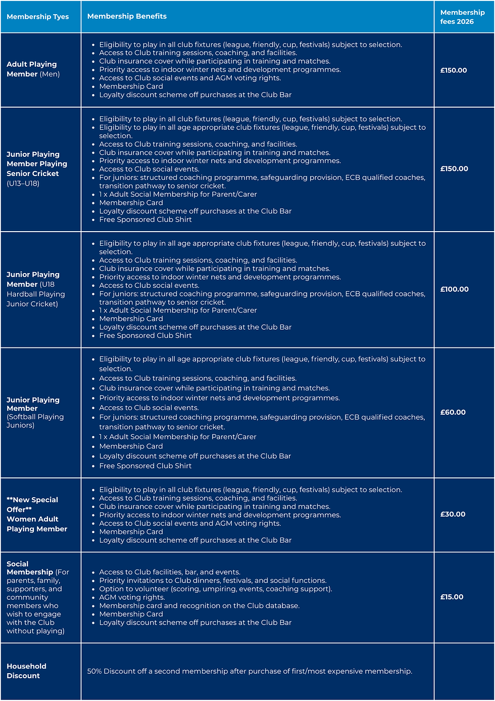 Members who have not renewed by 25th April 2026 will lose playing eligibility until fees are paid (Unless alternative agreement is reached with Membership Secretary).